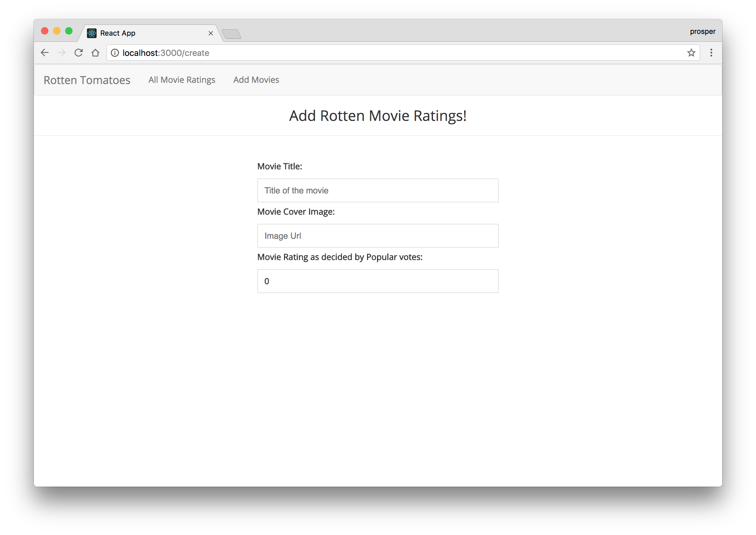Now, run your app. There should be nothing on the landing page because you haven't added any movies. Head over to the /create URL and add a new movie.