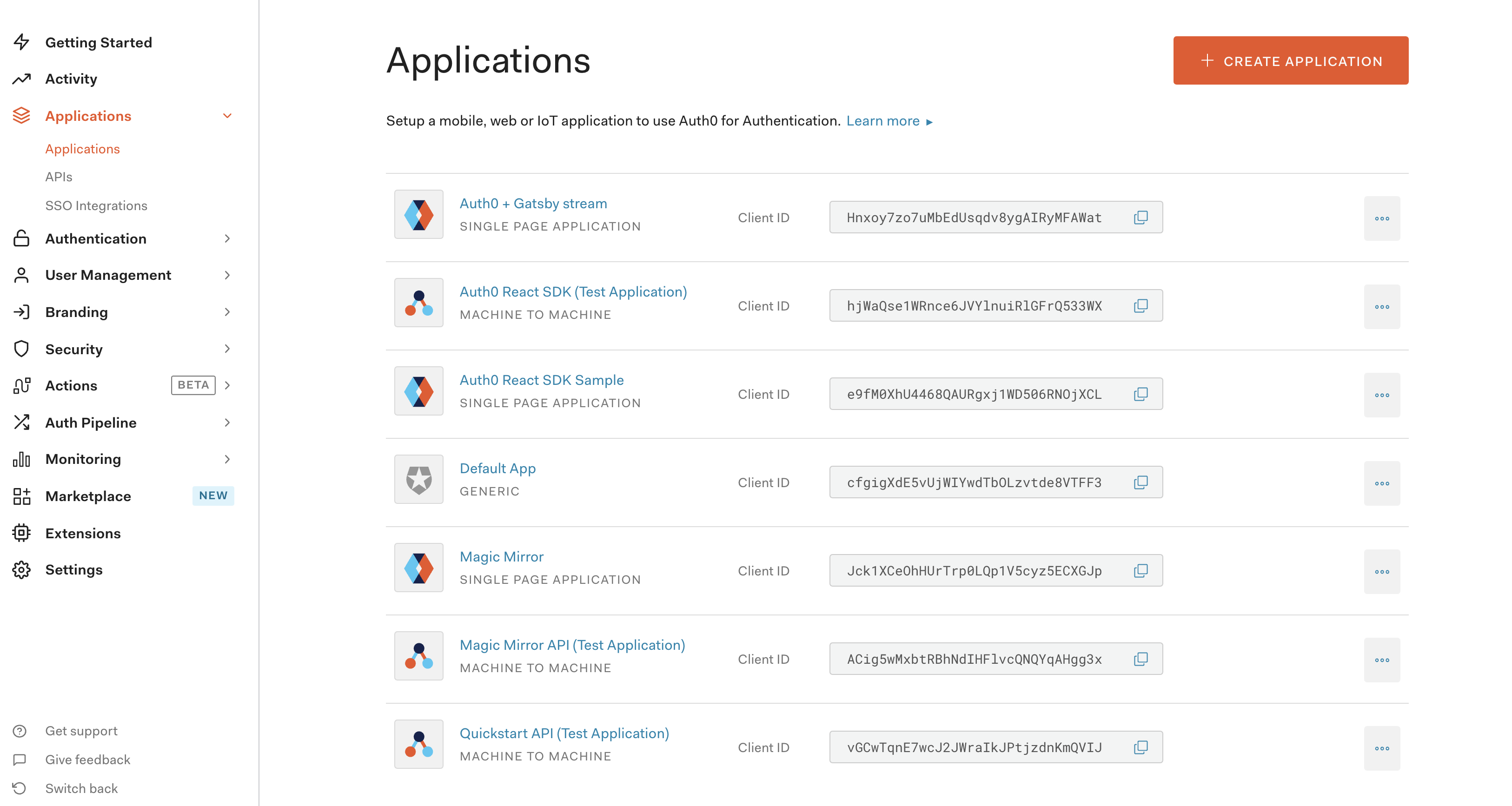 Go ahead and clone the auth0-magic-mirror repo. This is the repo that creates the client and also has the ExpressJS GET and POST routes for getting and updating the mirror text.
