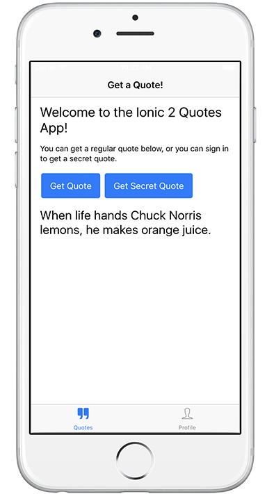 In this tutorial we'll build a simple Ionic 2 application that can authenticate users and provide access to protected resources that are secured with JWT authentication from a NodeJS server. We'll use our NodeJS JWT Authentication Sample to allow users to create accounts, log in, and retrieve public and private Chuck Norris quotes.