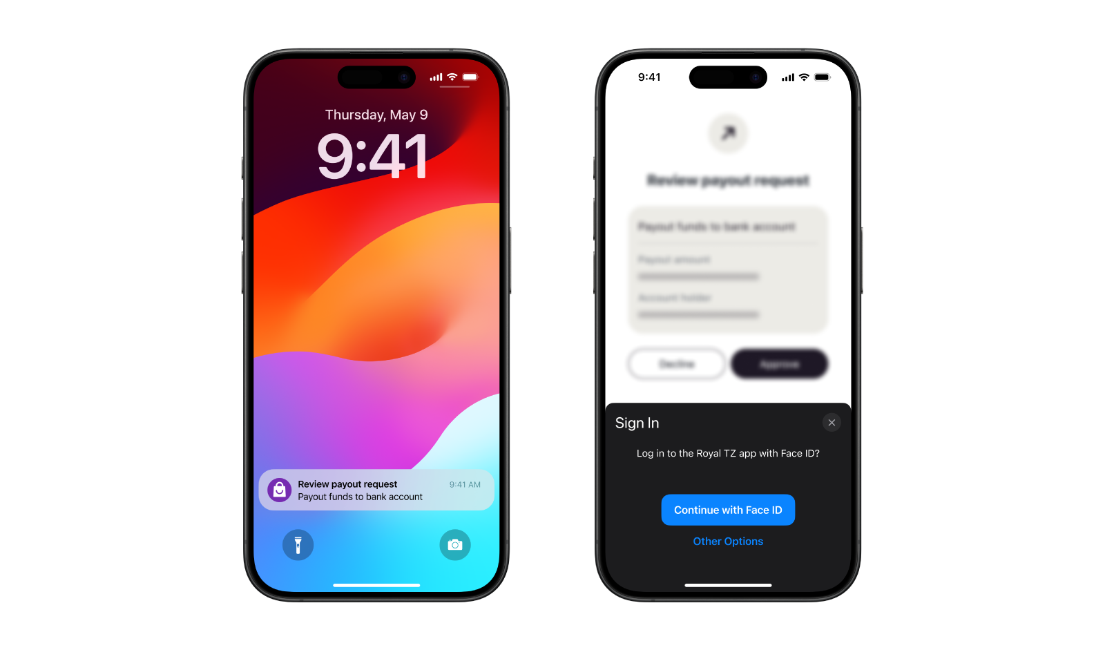 セキュリティ質問やメール/SMS を使ったワンタイム パスワード (OTP) などの従来のアウトオブバンド認証方法は、安全性に課題があり、利用者にとって不便です。CIBA はこれらの時代遅れの方法を安全でシームレスなアプリ内生体認証(Face ID や指紋認証など)に置き換えます。シンプルなプッシュ通知により、ユーザは機密性の高い個人情報を共有することなく、ワンタップで簡単に本人確認を行うことができます。