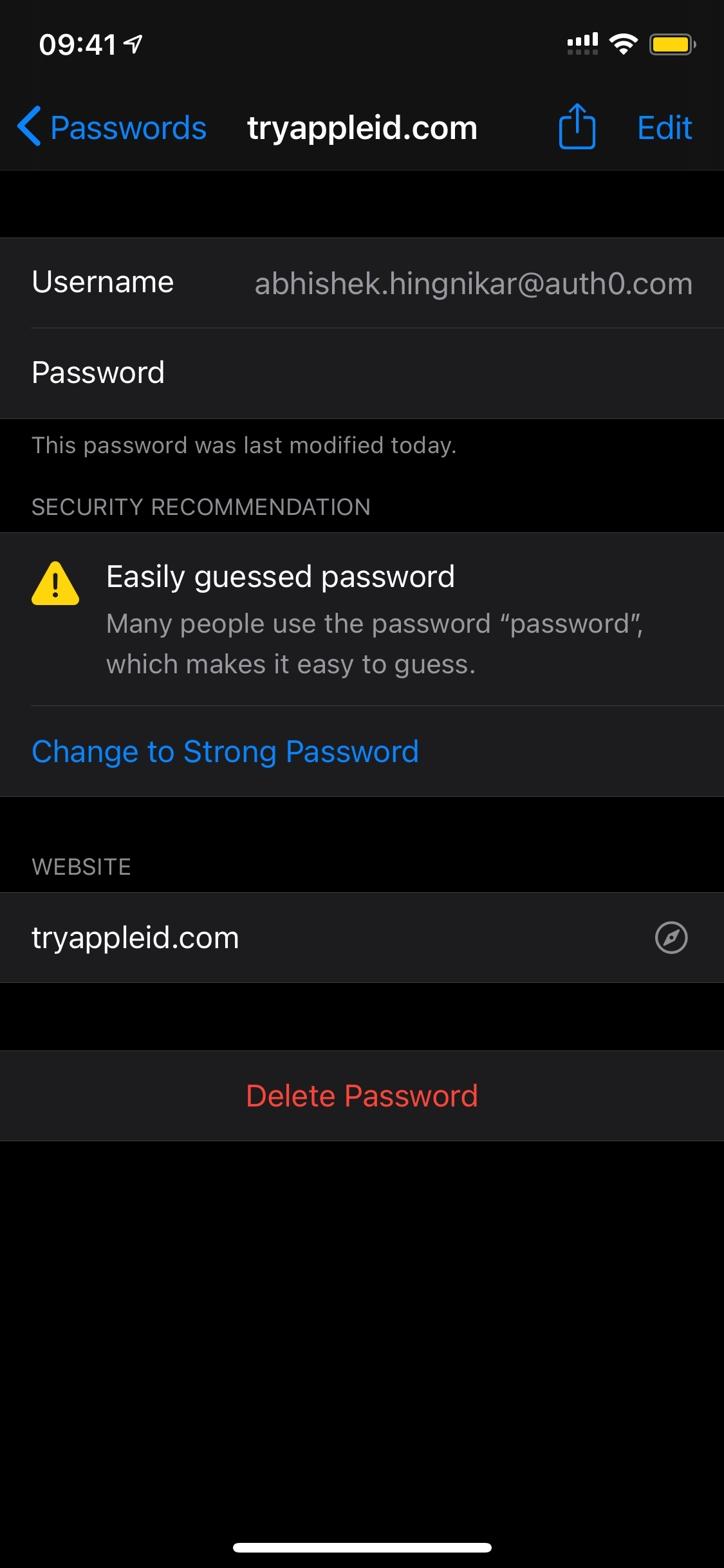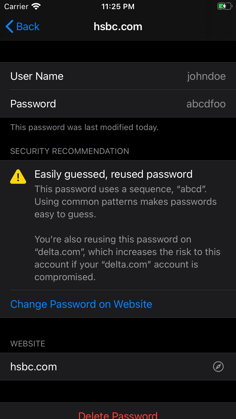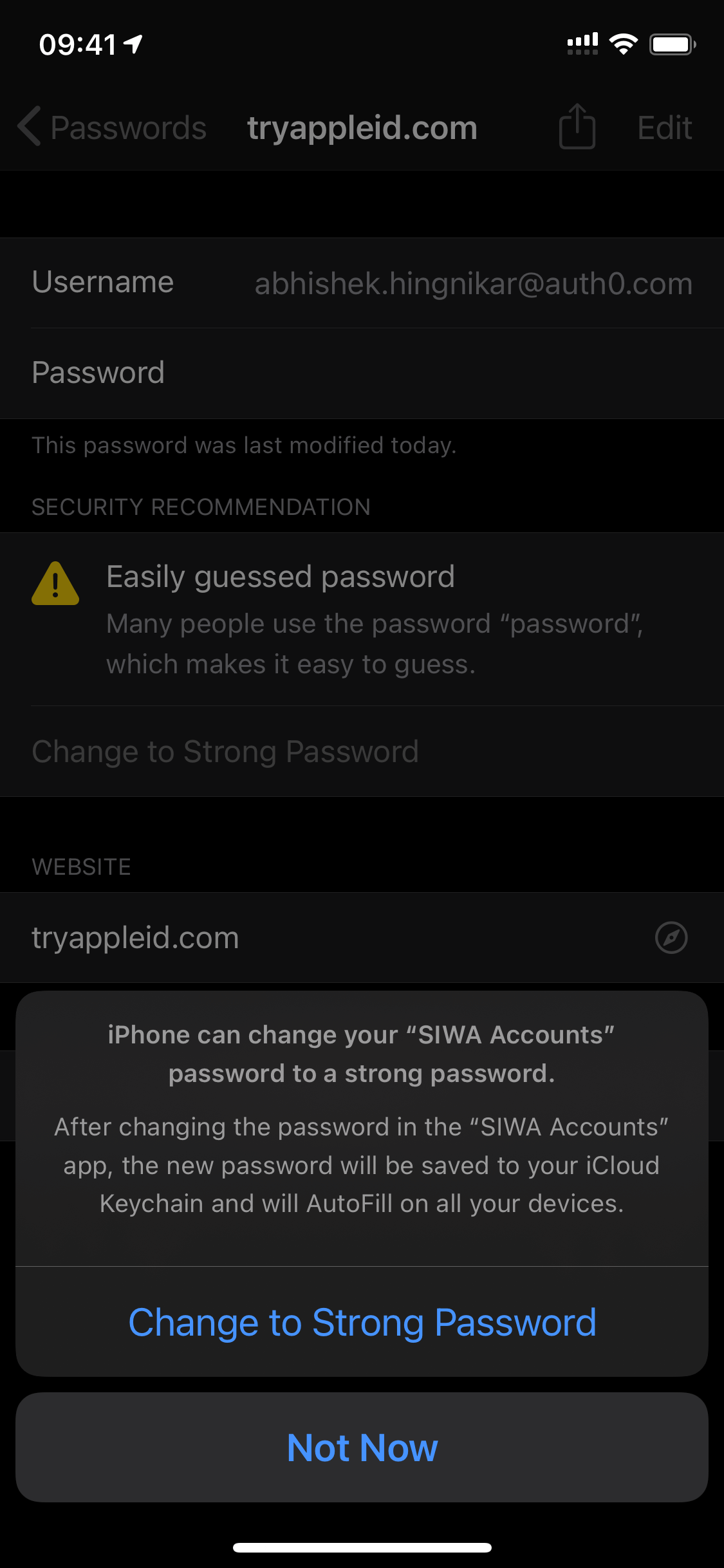 - iOS will generate a strong password