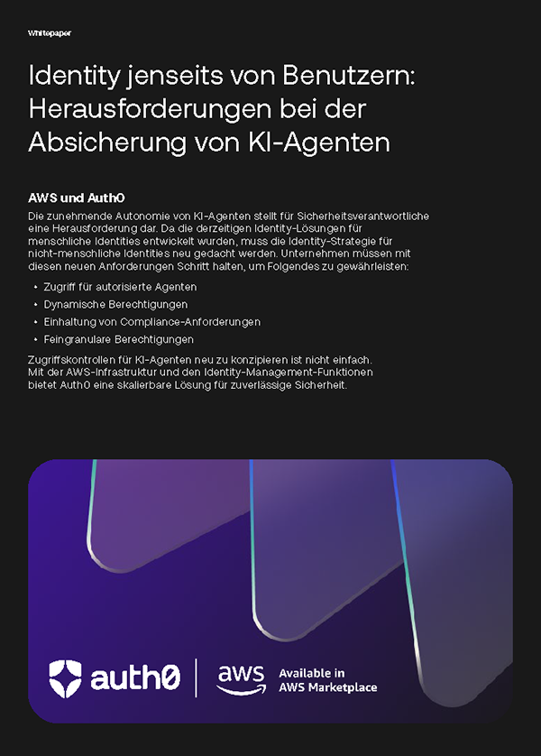 KI-Agenten wechseln derzeit von der Experimentierphase in die Produktion. Die meisten Identity-Kontrollen wurden jedoch für Menschen entwickelt. Im Whitepaper von AWS und Auth0 erfahren Sie, warum durch nicht-menschliche Agenten eine neue Identity-Ebene entsteht und was nötig ist, um Agenten abzusichern. Sie erfahren mehr zu diesen Themen: - Warum herkömmliches Identitäts- und Zugriffsmanagement (IAM) für autonome Agenten nicht ausreicht - Die vier Identity-Anforderungen für KI-Anwendungen: Agenten-Authentifizierung, Token Vaulting, asynchrone Autorisierung und feingranulare RAG-Autorisierung - Wie Human-in-the-Loop-Genehmigungen für langwierige Agentenaufgaben gestaltet werden sollten - Wie Amazon Bedrock und Auth0 Agenten ermöglichen, die Berechtigungen und Kontext berücksichtigen
