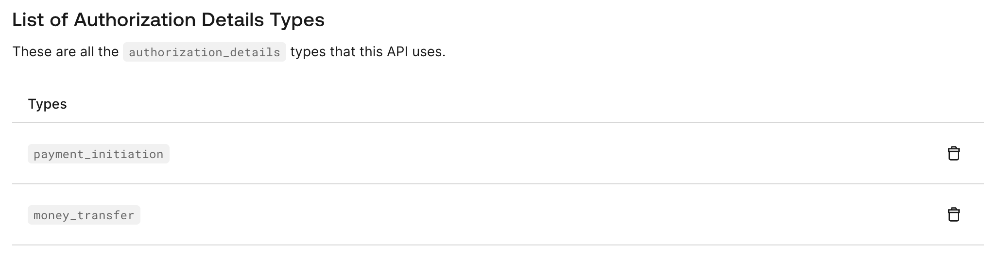 authorization_details types for a resource server, which is similar to registering allowed scopes. You can register authorization_details types with the Auth0 Dashboard or Management API.