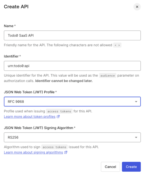 In the Auth0 Dashboard, register a custom API representing your SaaS API in your Auth0 tenant.