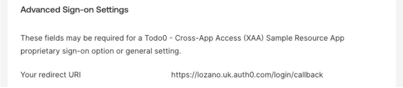 Under Sign On, click Edit and add the Requesting App’s callback URL in the Redirect URI field. Adjust the Redirect URI’s value depending on the testing application you want to use. To learn more, read Test the end-to-end XAA flow.