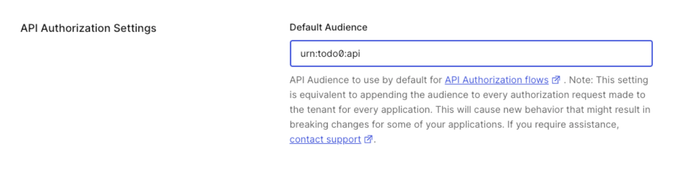 After you’ve created the API, you can optionally set its audience as the Default Audience for your Auth0 tenant under Tenant Settings.