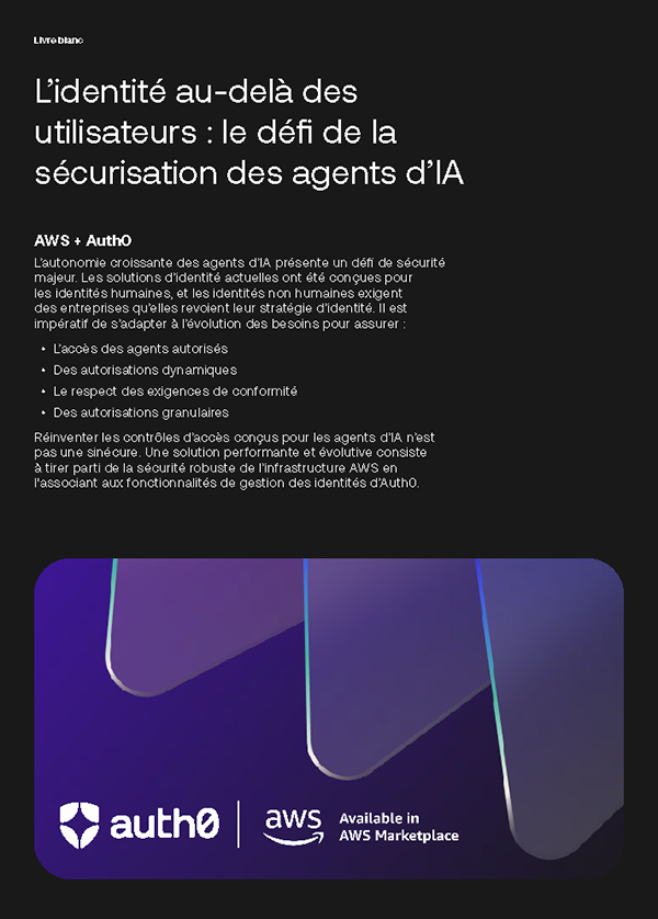 Les agents d’IA passent du stade d’expérimentation à la phase de production, mais la plupart des contrôles d’identité ont été conçus pour les humains. Ce livre blanc publié par AWS et Auth0 explique pourquoi les agents non humains créent une nouvelle couche d’identités et comment les sécuriser à grande échelle. Téléchargez-le pour découvrir : - Pourquoi les solutions IAM traditionnelles ne sont pas adaptées aux agents autonomes - Les quatre exigences en matière d’identité pour les applications d’IA : authentification des agents, mise en coffre des tokens, autorisation asynchrone et RAG granulaire - Comment créer des approbations « humain dans la boucle » (human-in-the-loop) pour les tâches longues réalisées par des agents - Comment Amazon Bedrock et Auth0 permettent la mise en place d’agents sensibles aux autorisations et protégés du contexte